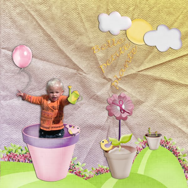 Je vous présente mon nouveau kit....pour changer du thème de Pâques mais pour rester un peu champêtre tout de même car vous allez avoir pleins de photos à scrapper, je vous présente ce kit contenant plein de fleurs, des copains pour vos enfants et des papiers très divers...Je vous offre aussi l'alpha assorti.